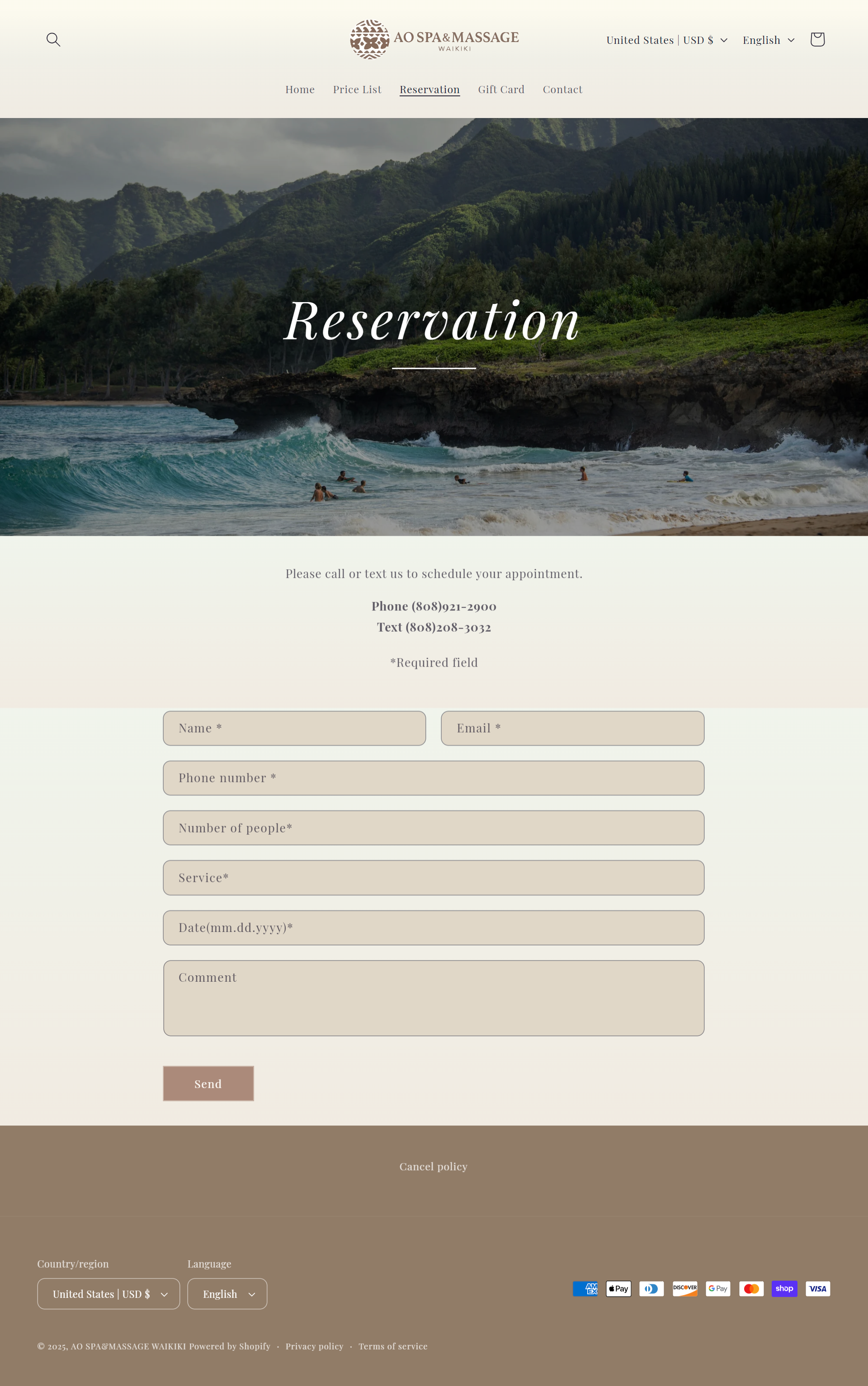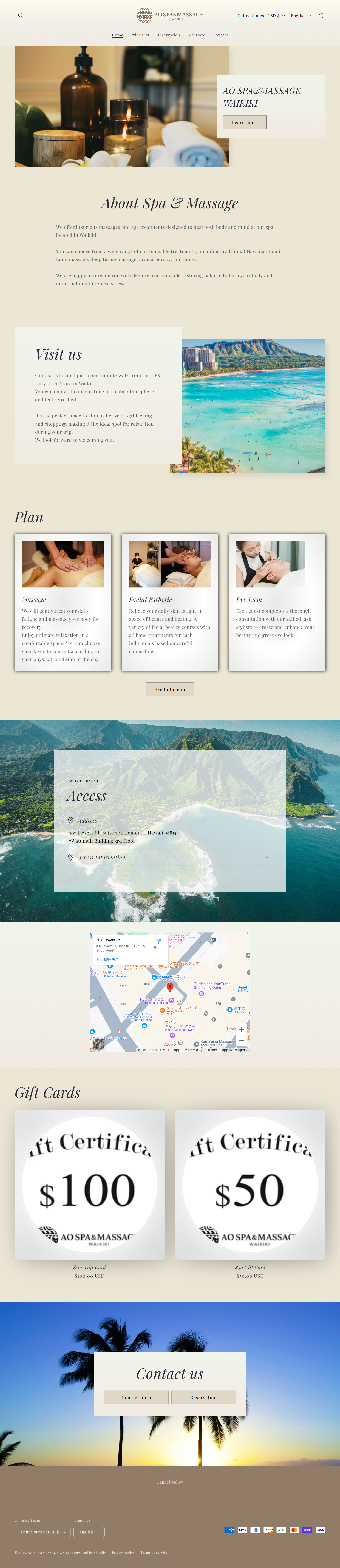 また、スパ&マッサージに加え、ギフトカード販売もご希望されていることから、Shopifyを活用し、グローバルマーケットに対応したサイトを制作しました。